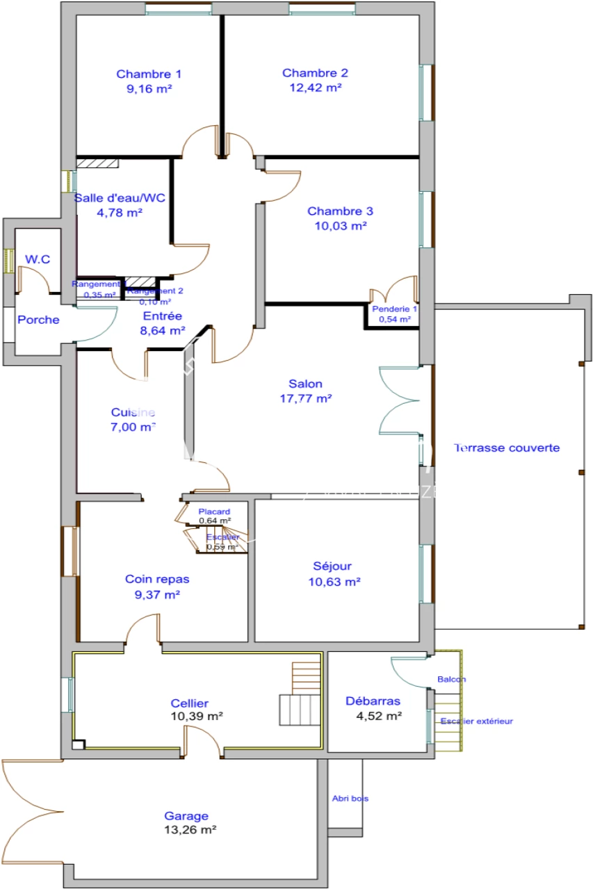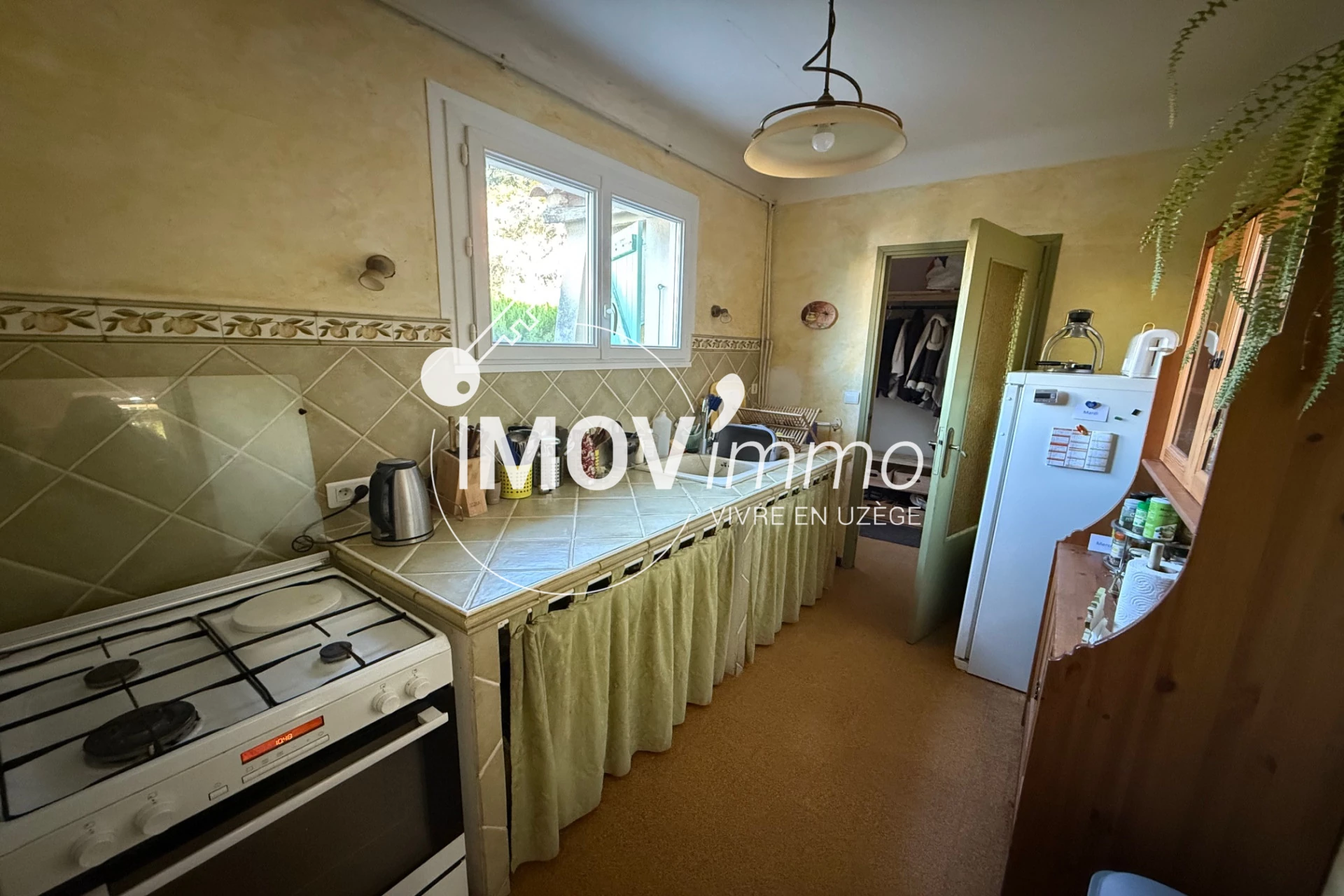 EXCLUSIVITE - UZES EN PLEIN CV - Maison des années 60 ( toiture, huisseries, électricité, chauffage rénovés) et non mitoyenne offrant entrée, séjour avec accès terrasse sud , salle à manger , cuisine indép, 3 chambres , salle d'eau et WC - A l'étage : Aménagées dans les combles 2 espaces nuit + poss petit dressing - Garage stockage et cellier, cave et débarras -