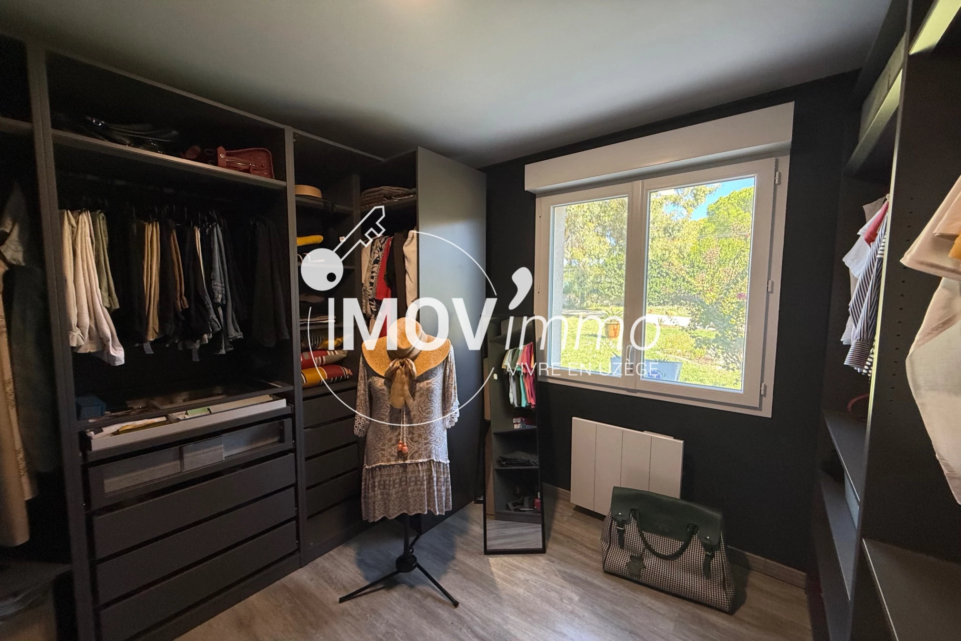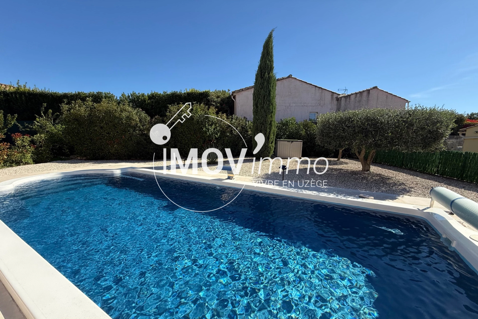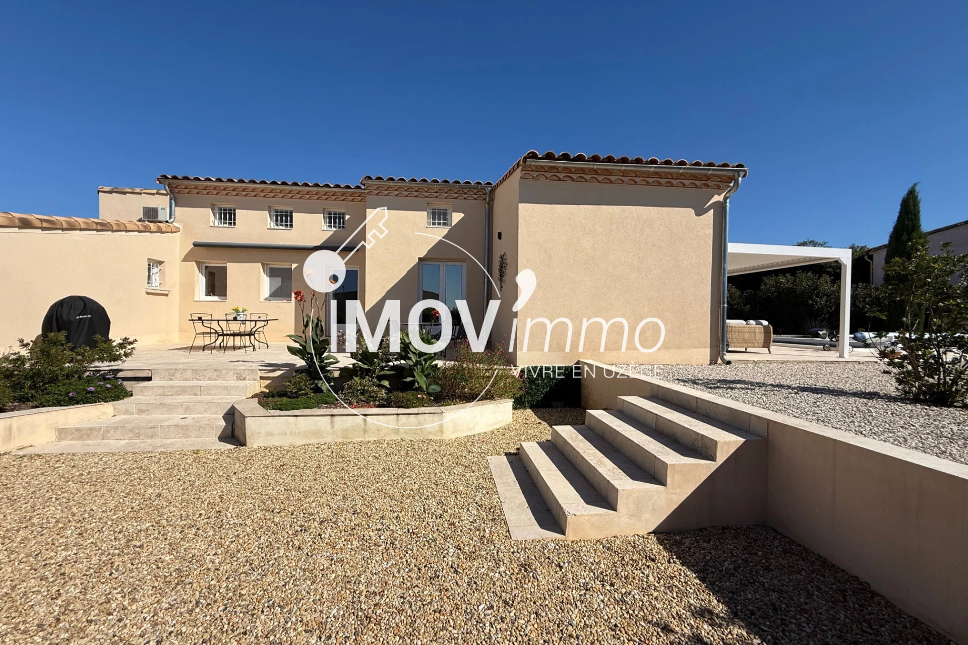 UZES 7 kms, dans village avec commerces : Villa entièrement rénovée de 1995, env. 158 m² sur 1643 m² de terrain joliment arboré avec piscine 10x4m au sel. Vaste entrée, accès salon salle à manger cuisine US Schmitt équipée le tout d'une surface de 55 m², donnant accès à 2 terrasses (sud et ouest) avec jolie vue, buanderie, atelier, 2 chambres en rdc, sdbains, wc, pièce dressing. A l'étage : Espace mezzanine, 2 chambres mansardées, sde avec wc. Clim réversible. Moustiquaires, pergola bioclimatique, béton désactivé, toiture neuve. Rien ne manque aucun travaux !