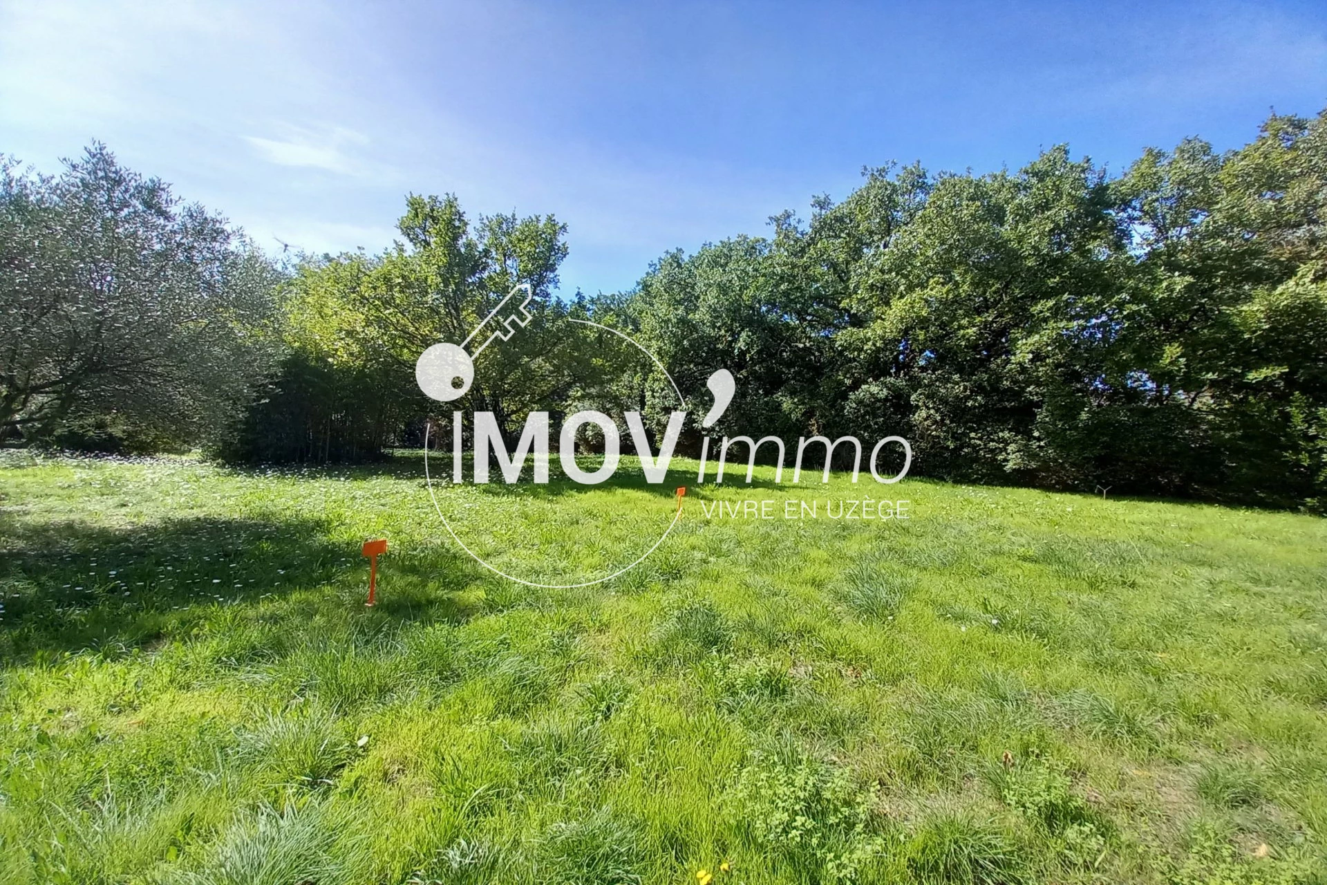 UZES 7 kms : Dans village avec commerces : Terrain à bâtir de 750 m², hors lotissement, plat, tout à l'égout à prévoir, dans environnement calme et arboré. Emprise au sol autorisée 160 m² .