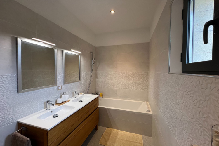 ST QUENTIN A PIEDS DU VILLAGE AU CALME - villa en position dominante d'env 140m² sur sous sol de 80 m2 implantée sur un terrain de 2400 m2 avec piscine en dur 9x4 sans vis à vis plein sud - Séjour...